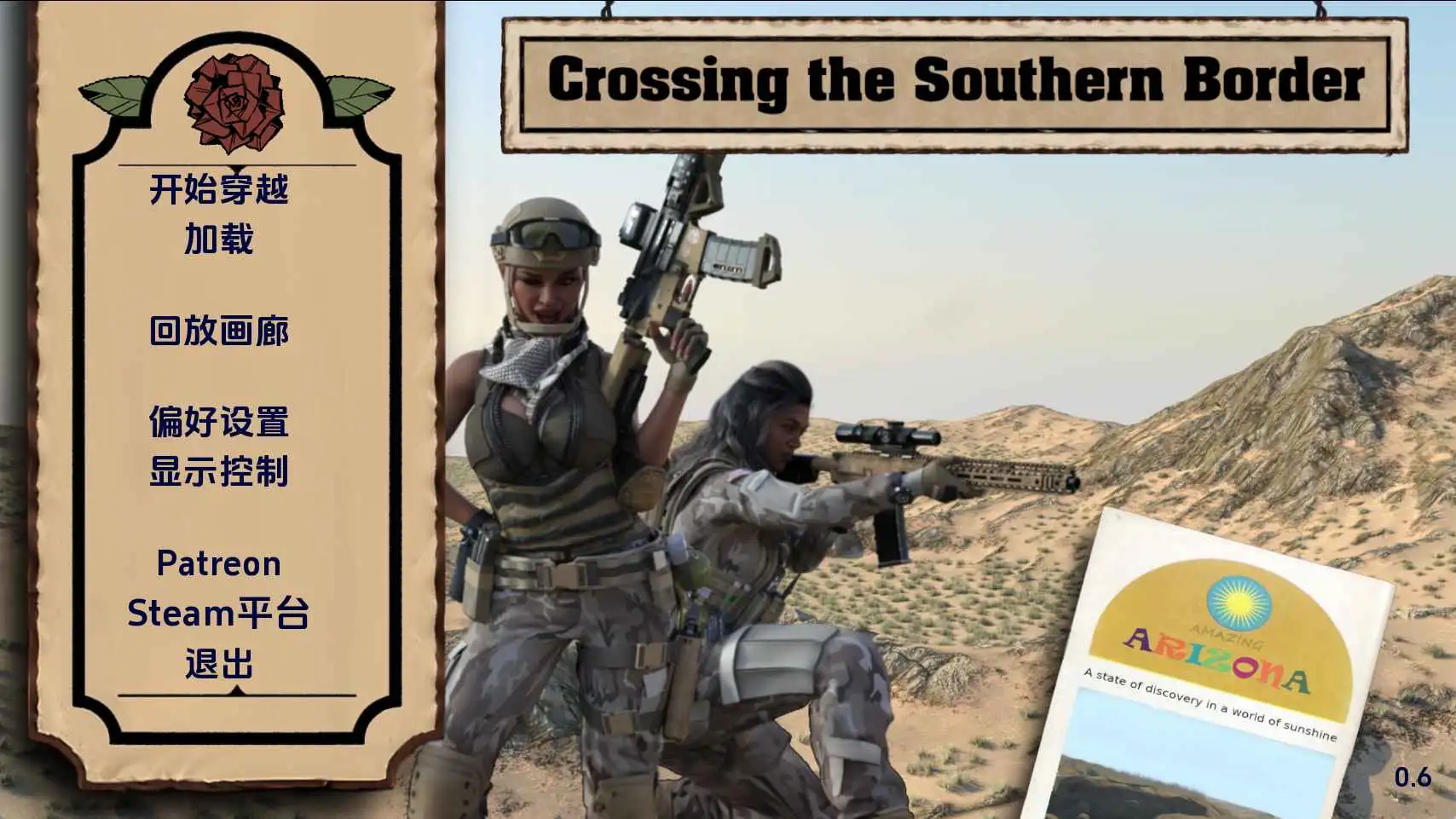 美墨边境怪事频发!这会是你唯一一次穿越边境吗?你从墨西哥一路向北,沿途会遇到形形色色的人。大多数遭遇都十分离奇,而且往往会引导主角探索自身性取向的新层面。还有扶她。警告:第一次性爱前需要点击很多次!另:扶她(以及一些女性角色)仅限男性角色。剧情和游戏玩法剧透 + 预告片
